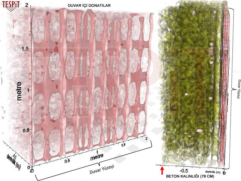 - Taşıyıcı sistem birimlerinde iç süreksizliklerin (çatlak, kırık, vb.) haritalanması (kolon, kiriş, temel),