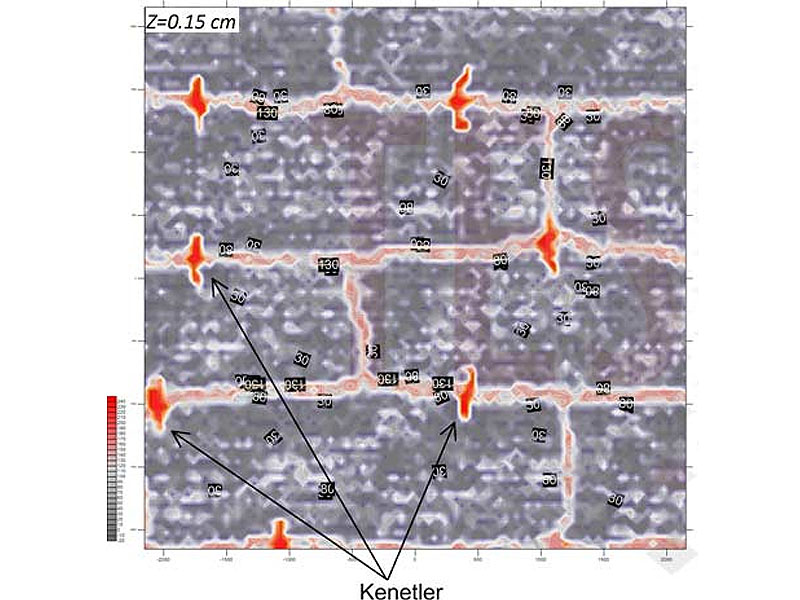 - Tarihi yapılarda güçlendirme amacıyla kullanılan sistemlerin ve özellikle yapı içi metal (kenet, gergi demirleri, demir hatıl ve benzeri) donatıların ayrıntılı haritalanması,